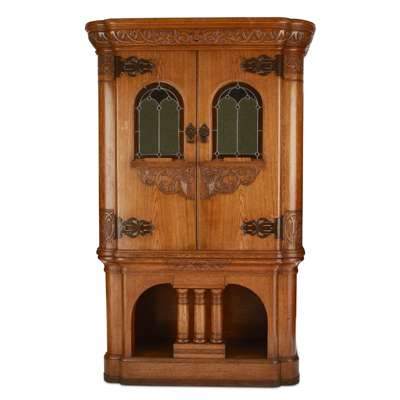 CARVED OAK SIDE CABINET AND COMPANION CABINET, CIRCA 1900