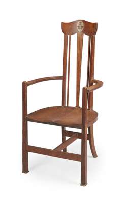 ARTS & CRAFTS OAK HIGH BACKED ARMCHAIR, CIRCA 1901