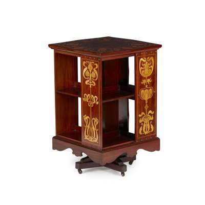 ART NOUVEAU MAHOGANY AND INLAND REVOLVING BOOKCASE, CIRCA 1900