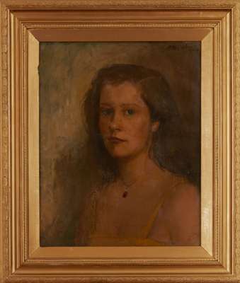 PORTRAIT OF A GIRL WEARING A GARNET NECKLACE