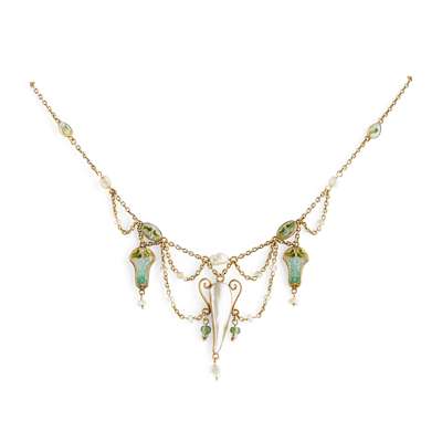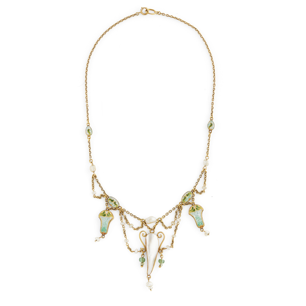 ARTS & CRAFTS ENAMEL AND PEARL SET NECKLACE, CIRCA 1905