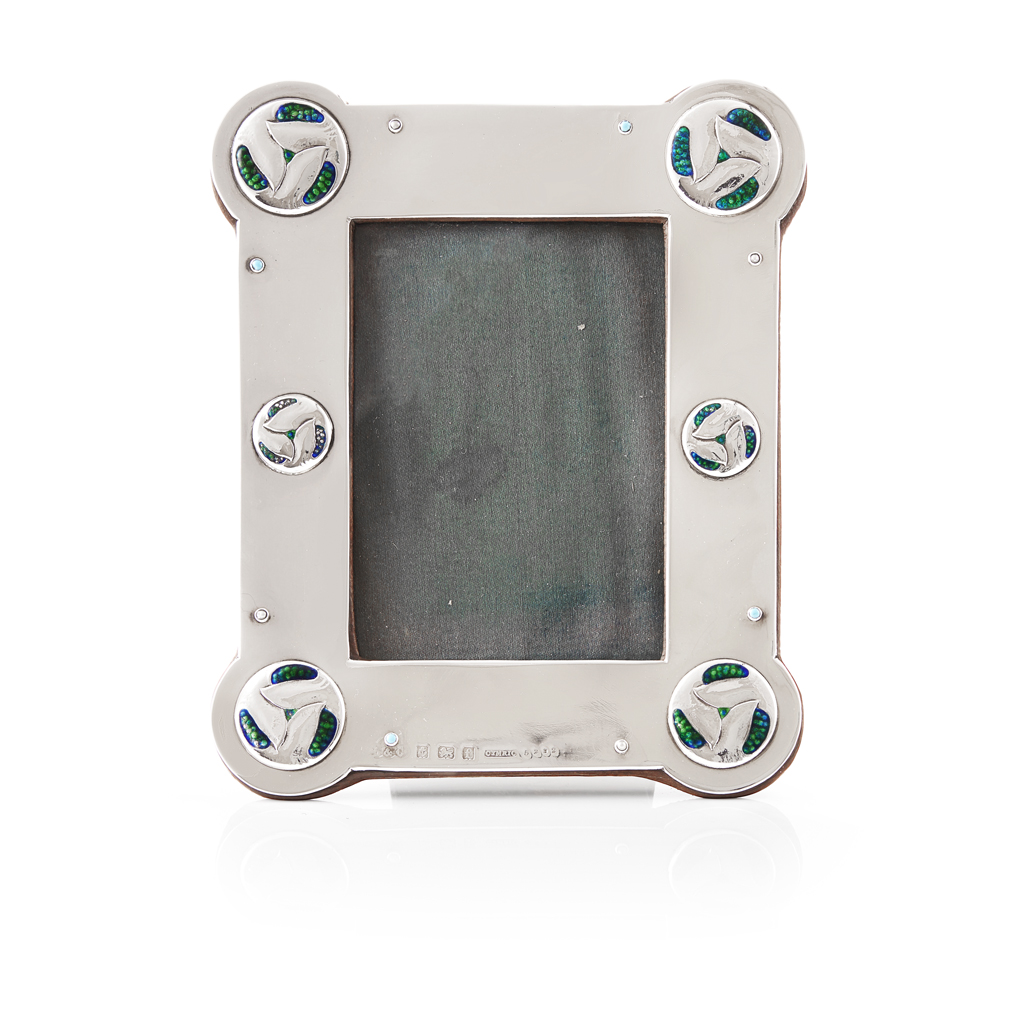 'CYMRIC' SILVER, ENAMEL AND INLAID PHOTOGRAPH FRAME, DATE 1905