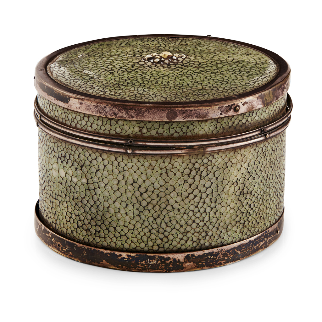 WHITE METAL MOUNTED SHAGREEN BOX AND COVER, 1930S