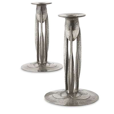 PAIR OF 'TUDRIC' PEWTER CANDLESTICKS, CIRCA 1900