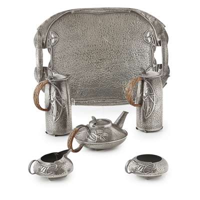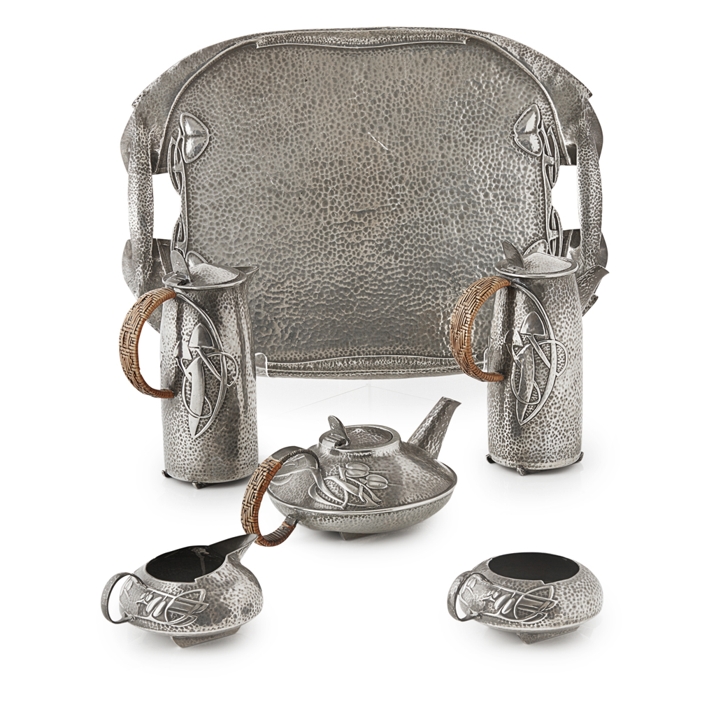 SIX-PIECE 'TUDRIC' PEWTER TEA & COFFEE SERVICE, CIRCA 1900
