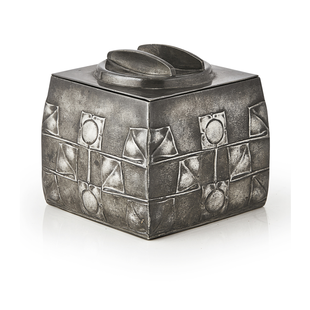 'TUDRIC' PEWTER BISCUIT BARREL & COVER, CIRCA 1900