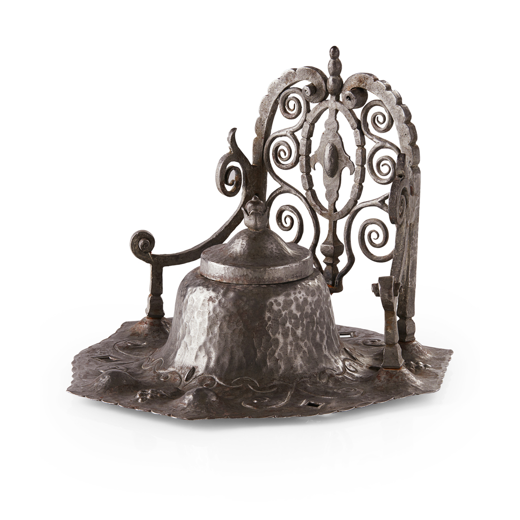 HAMMERED STEEL INKWELL, CIRCA 1900