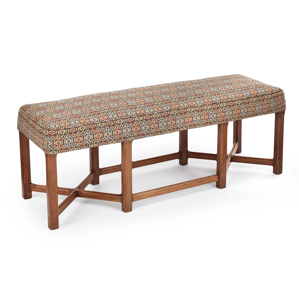 the rectangular upholstered seat raised on square canted supports linked by stretchers