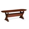 the dished rectangular top with rounded ends above shaped trestle ends linked by a v shaped stretcher