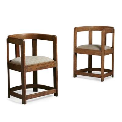 PAIR OF ARTS & CRAFTS OAK TUB CHAIRS
