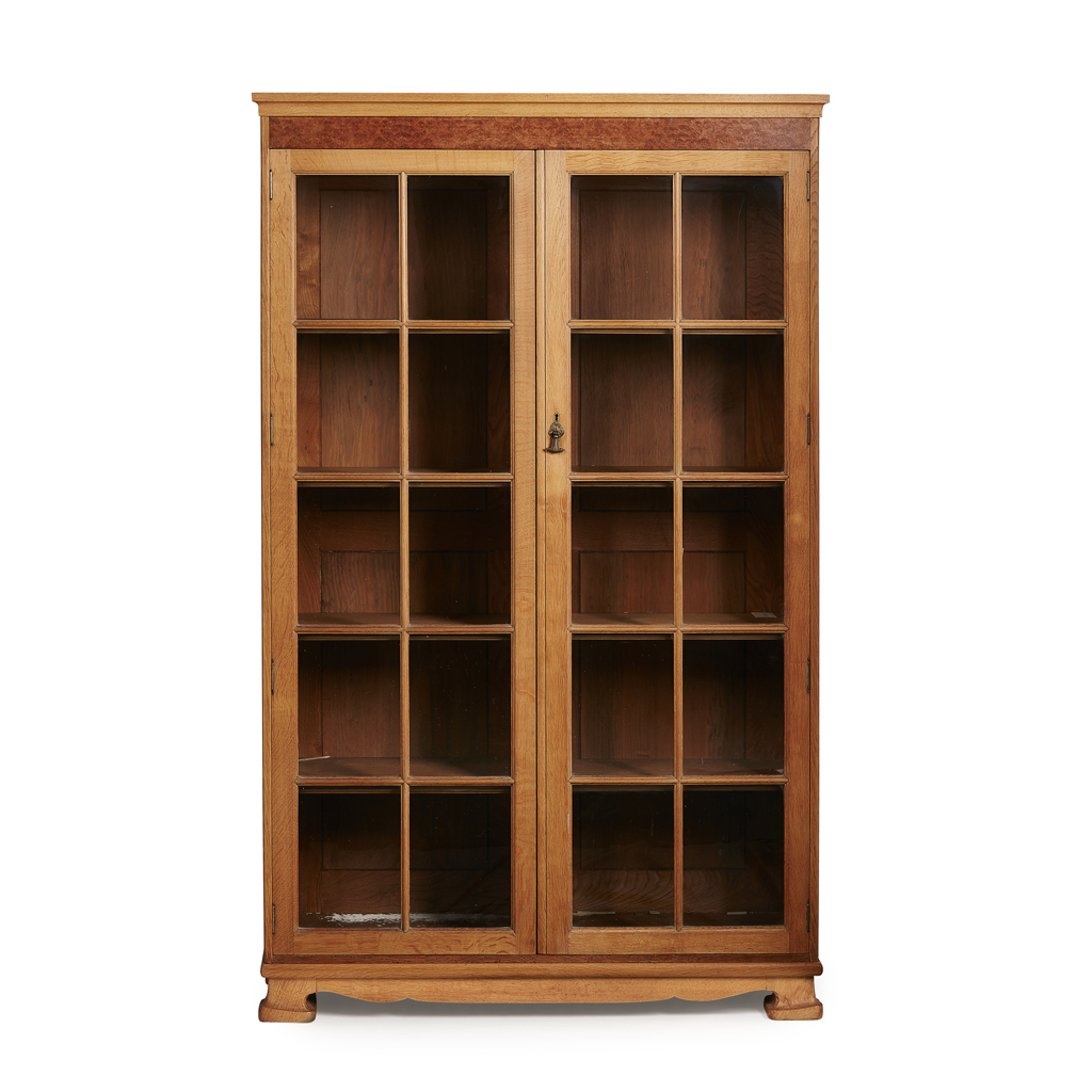 ARTS & CRAFTS OAK AND BURR WALNUT INLAID BOOKCASE, CIRCA 1930