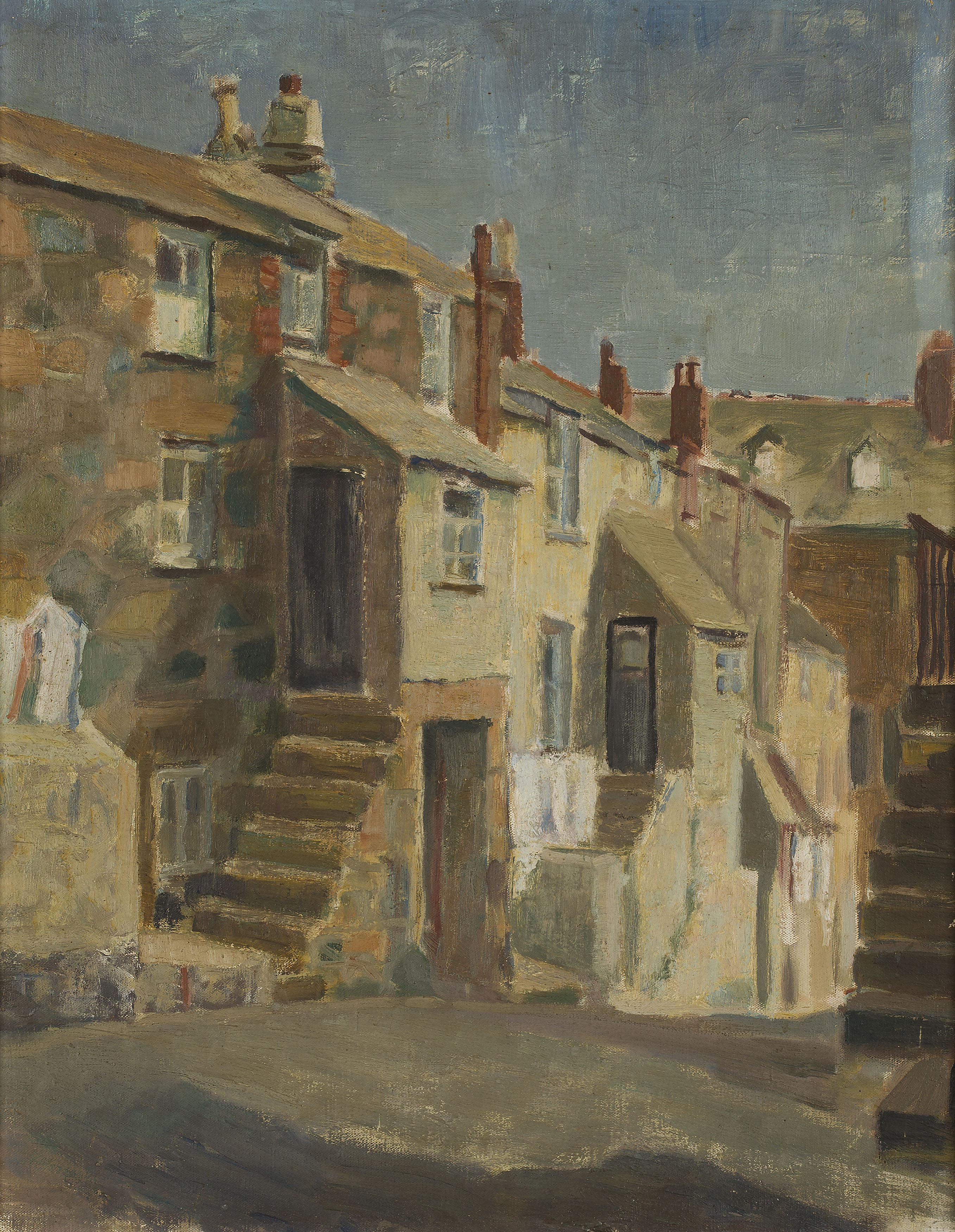 Although interested and talented at drawing and painting from a young age, Terry Frost didn't get a chance to seriously pursue art, until he had time on his hands during four years as a Prisoner of War at Stalag 383. On his return to Britain, all he wanted, much to the surprise and frustration of his family, was to become an artist. Friends from the war supported his ambition, assisting in the pursuit of an ex-serviceman's grant and a place at Camberwell School of Art, as well as suggesting St. Ives as a place to live; beautiful, far from family and full of artists. It was this limbo period from 1945-47 and between arriving with his wife Kath in St Ives and before commencing schooling at Camberwell, that Terry spent time working on his painting and produced these two works. They show a clear technical ability and energy preceding his later pre-occupation with bright colours and energetic abstraction.