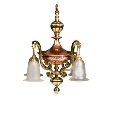 BRASS & COPPER ELECTROLIER, CIRCA 1910