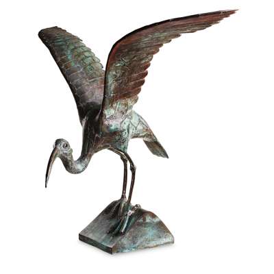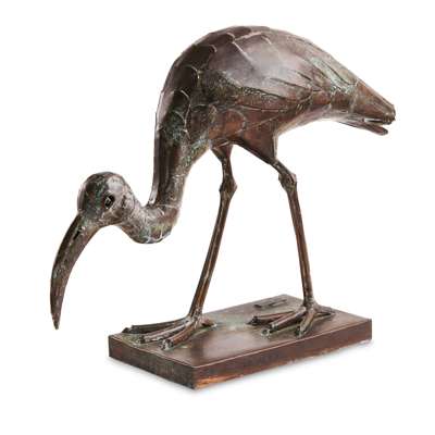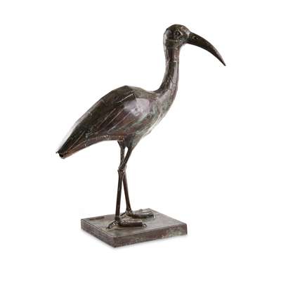 patinated copper, 84cm high; and two companion sculptures by the same hand IBIS STANDING, 62cm high; and IBIS FEEDING, 42cm high all signed to base EUGEN HOFFMAN (3)