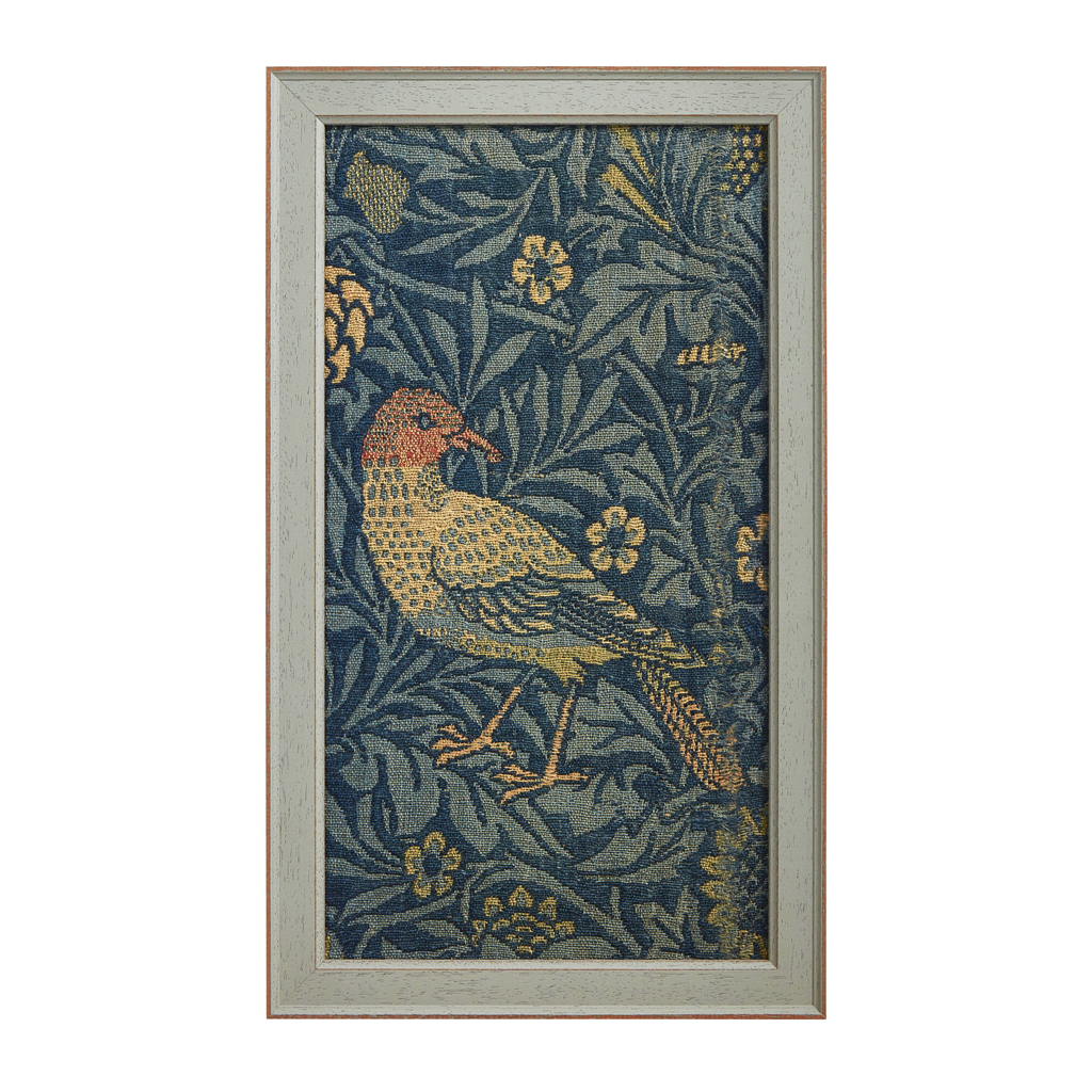 jacquard-woven woollen double cloth fragment, framed and glazed