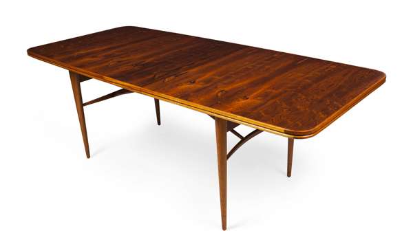 ROSEWOOD AND WALNUT EXTENDING DINING TABLE, 1960S