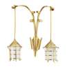 with scrolled back plate and two scrolling branches, each suspending a glazed lantern