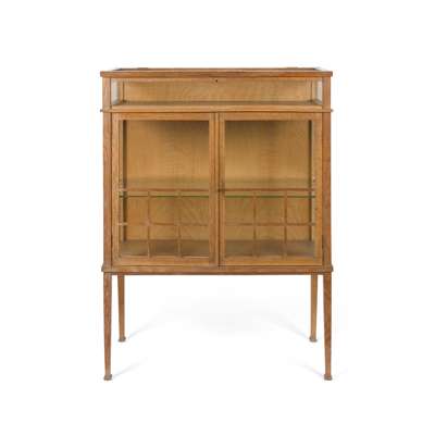 OAK FRAMED DISPLAY CABINET, EARLY 20TH CENTURY