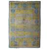 with allover floral and foliate field and corresponding banded border reserved on a green ground