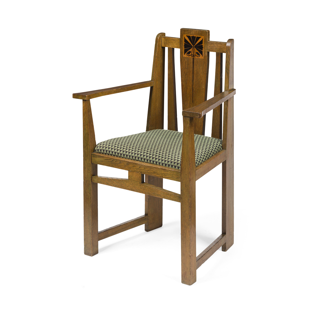 INLAID OAK ARMCHAIR, CIRCA 1900