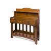 with chequer inlaid decoration, the superstructure with open shelf above marquetry inlaid lozenge and rectangular top with two drawers, raised on planked supports linked by a lower platform stretcher with slatted back