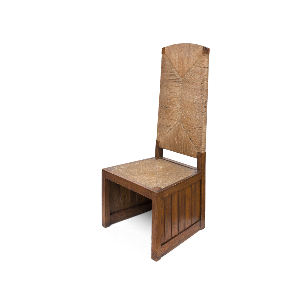 OAK AND RUSH-UPHOLSTERED CHAIR, CIRCA 1910