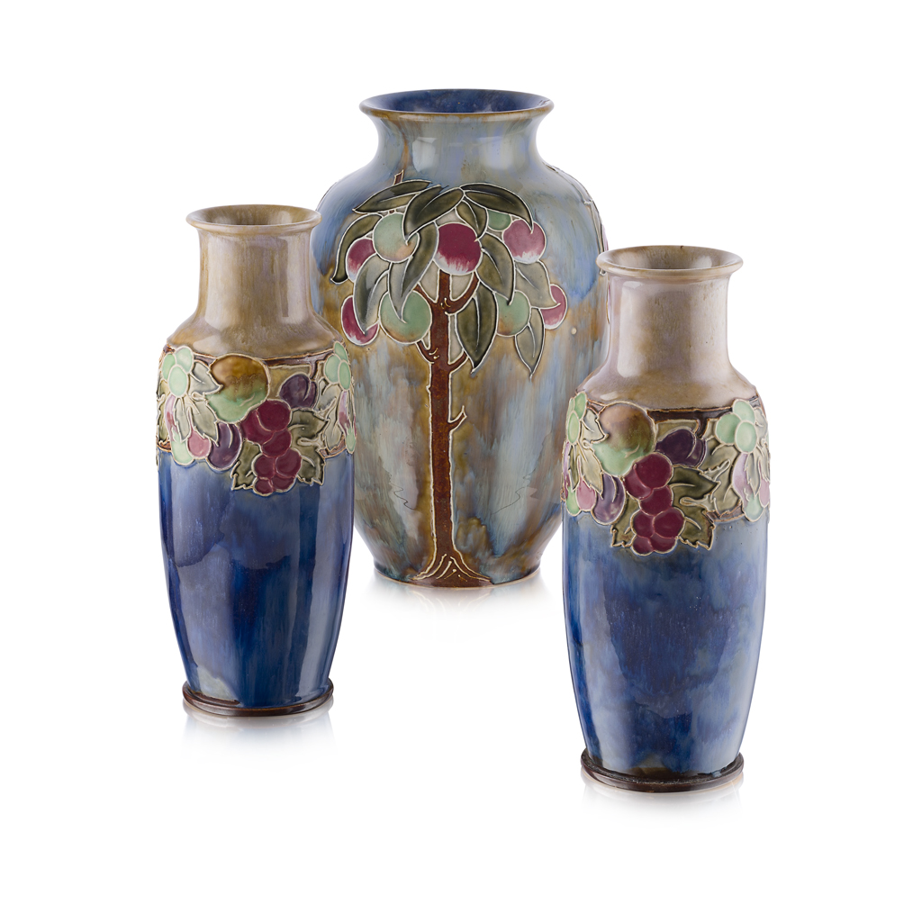 GROUP OF THREE STONEWARE VASES, CIRCA 1920
