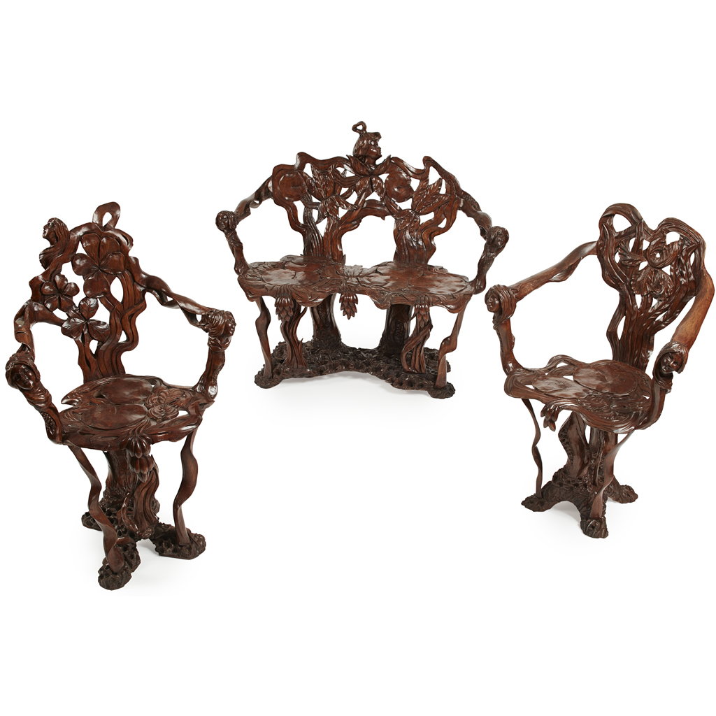 ART NOUVEAU FRUITWOOD GROTTO SUITE, CIRCA 1900