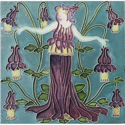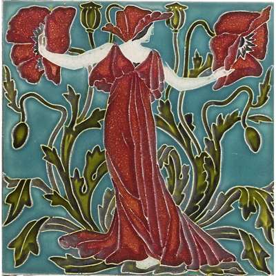 GROUP OF THREE 'FLORA'S TRAIN' RELIEF-PRESSED TILES, CIRCA 1900-1901