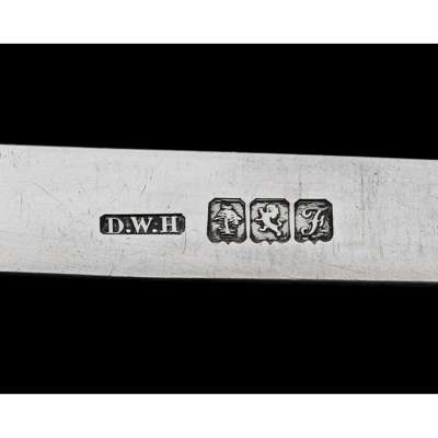 comprising: A SINGLE SOUP SPOON, with deep almost circular bowl and with incised heel, pierced terminal, 26.5cm (10½in) long; and A SINGLE DINNER FORK, with four prongs, pierced terminal, 26cm (10 1/4in) long, each with maker’s mark DWH (David W. Hislop), hallmarked Glasgow 1902 (2)