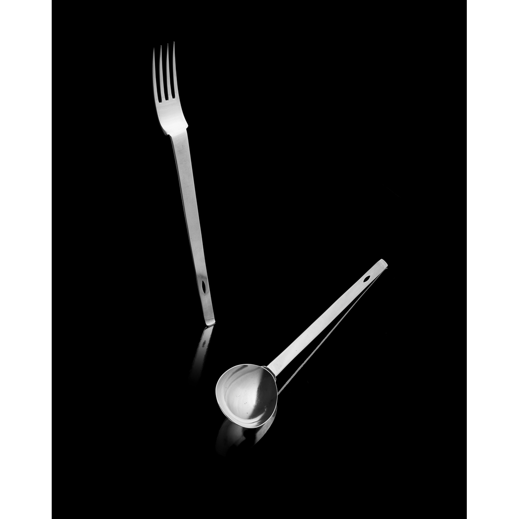 Note: In 1902 Jessie and Fra Newbery had commissioned from Mackintosh a design for a twelve place setting of dining cutlery, a gift from Jessie's parents. Each set containing a soup spoon, dessert spoon, dinner fork and dessert fork (knives were supplied separately from a stock pattern). The commission was handled by a jeweller's in Glasgow, Edwards & Company, and the cutlery was made by D W Hislop, a Glasgow silversmith who worked with Mackintosh on other projects. All of the cutlery was later divided equally between the Newberys' daughters, Mary and Elsie; Mary's pieces were sold separately during the 1970s and 1980s.