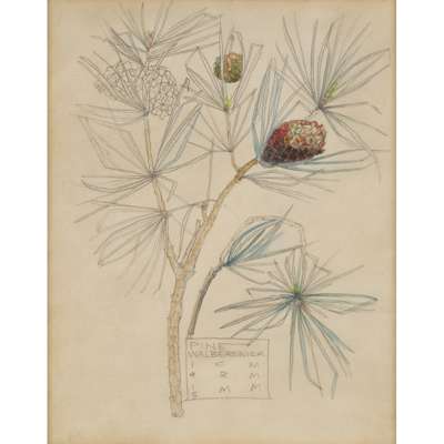 The Mackintoshes moved to Walberswick in 1914, first of all for a recuperative holiday, but the outbreak of war persuaded them to remain in the village for fifteen months. They first of all stayed next door to the Newberys, who had bought a semi-detached villa in the village about 1900. Mackintosh spent much of his time sketching wild flowers and plants on the coast (an activity which was to contribute to his arrest as a suspected enemy spy in 1915). The belief that the colouring on these drawings was applied by Margaret Mackintosh is countered here by the quality and manner of the watercolour, which is entirely consistent with the many drawings where both his own initials and those of Margaret are included.