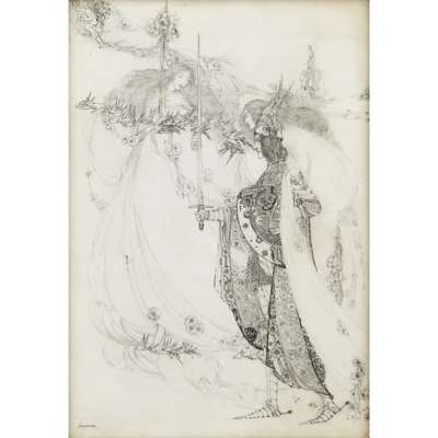 pen and Indian ink on vellum, signed lower left JESSIE M. KING