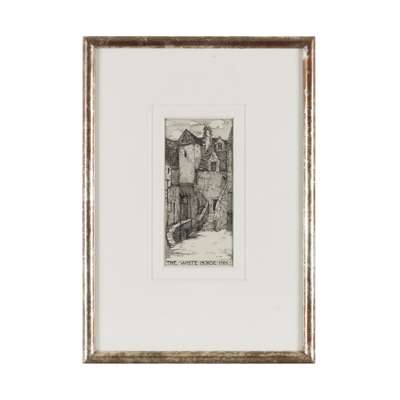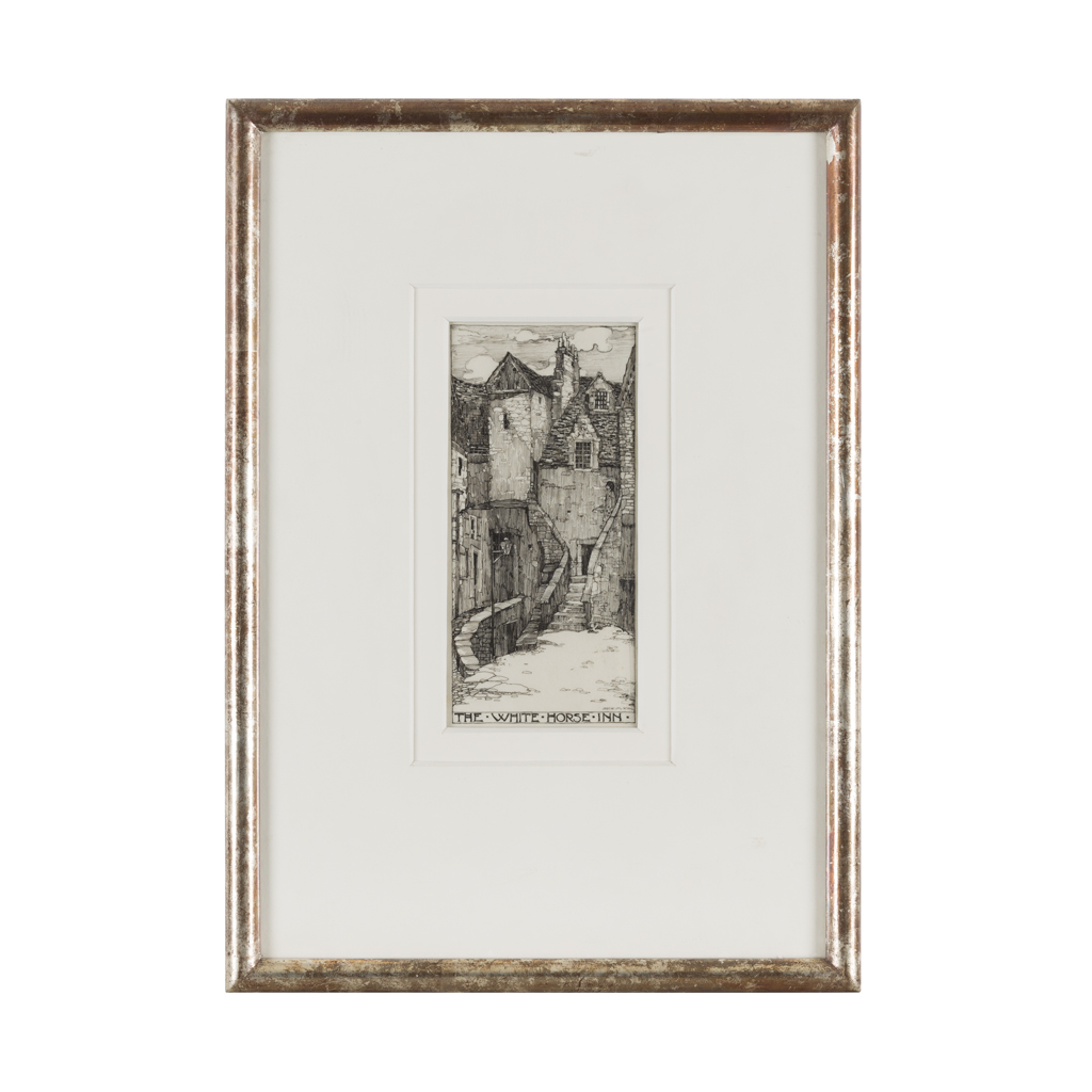 Note: Jessie King began producing work for the Foulis Press around 1907 and 'The Grey City of the North' was published in 1910, showing twenty-four topographical plates of Old Edinburgh. King commented on this work "It seems a pity that the charm of the outsides of these houses cannot be retained with the interiors remodelled to satisfy the demands of modern ideas. Perhaps it is only the hand of the artist that can save for the furture this beauty in danger of being demolished."