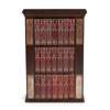 the moulded top above three open shelves filled with cloth bound books, each designed by Morris, the frame with four embossed copper panels, the design reflecting that of the bindings, the whole raised on a plinth