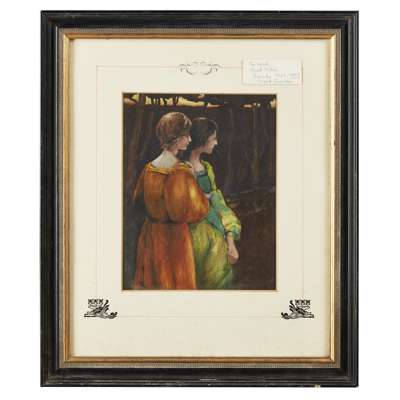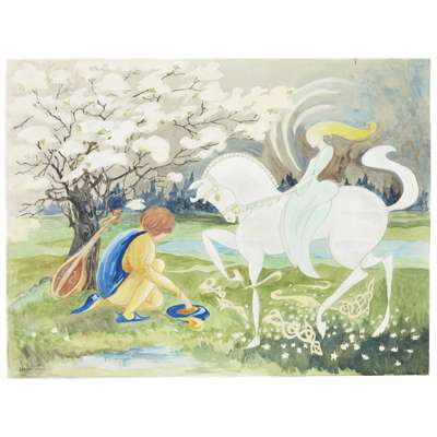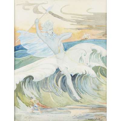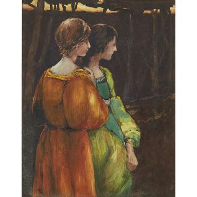 watercolour, signed lower right WENDY WOOD, 48cm x 37cm; another watercolour by the same hand, signed lower left WENDY WOOD 45.5cm x 61cm; ERIC HAROLD MACBETH ROBERTSON (1887-1941) A WALK IN THE COUNTRY watercolour 13cm x 23cm; and JANET FISHER (1867-1926) 'THE WOOD', watercolour, signed and dated lower left J.FISHER/ 1923, 30cm x 23cm (4)