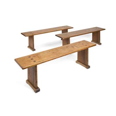 SET OF THREE ARTS & CRAFTS MAHOGANY BENCHES, EARLY 20TH CENTURY
