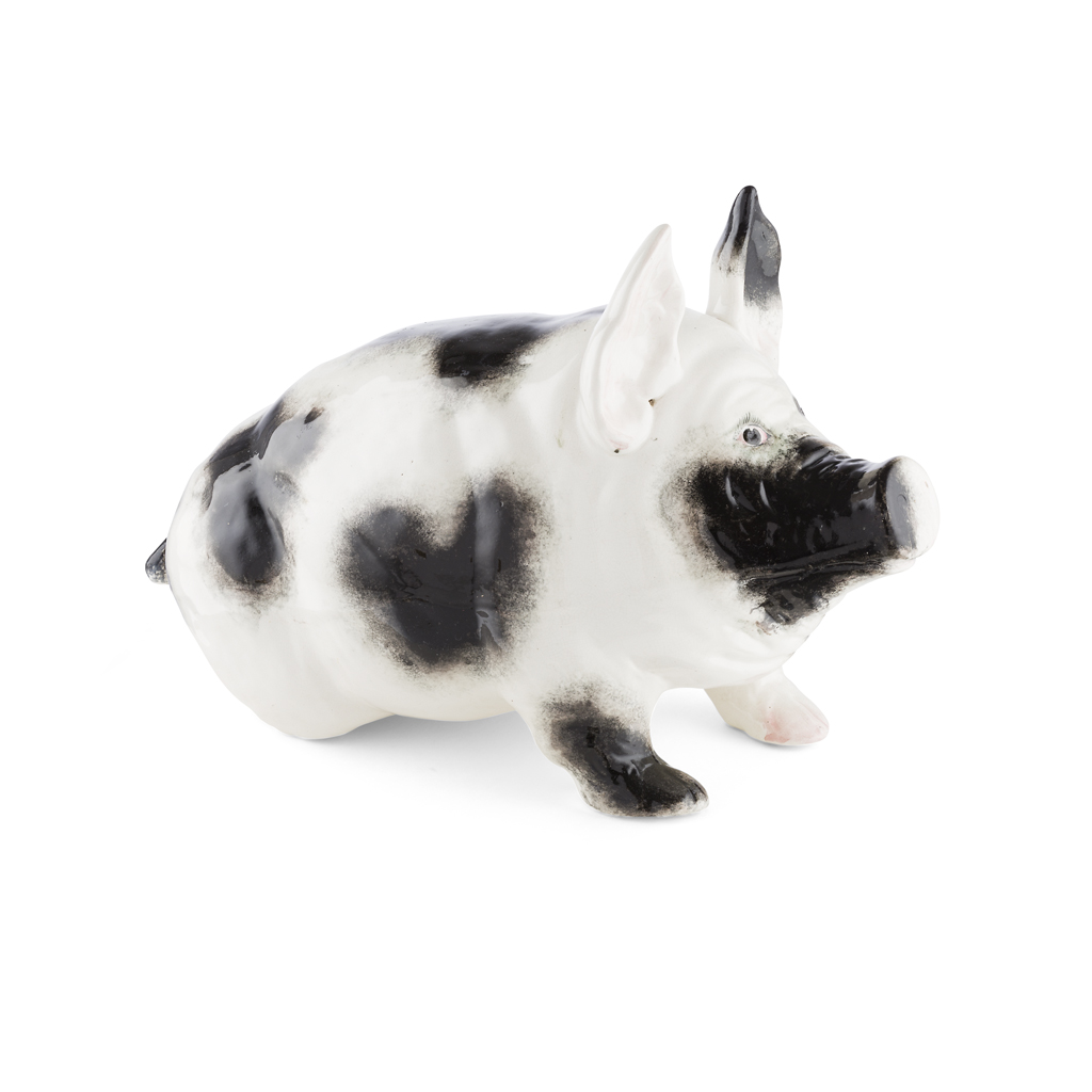 LARGE BLACK & WHITE PIG, LATE 19TH CENTURY