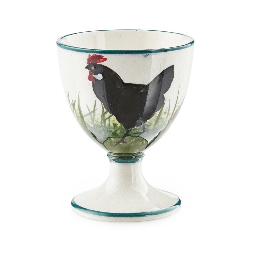 'BLACK COCKEREL & HENS' EGG CUP, CIRCA 1900