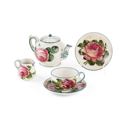 ASSEMBLED 'CABBAGE ROSES' BREAKFAST SET, CIRCA 1900