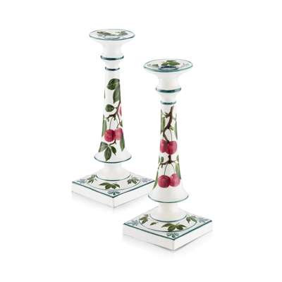 MATCHED PAIR OF 'CHERRIES' TALL CANDLESTICKS, CIRCA 1900