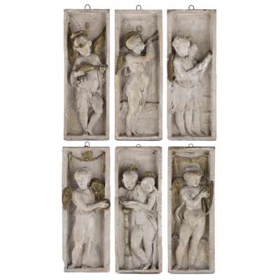 SET OF SIX PLASTER RELIEF PANELS, LATE 19TH CENTURY