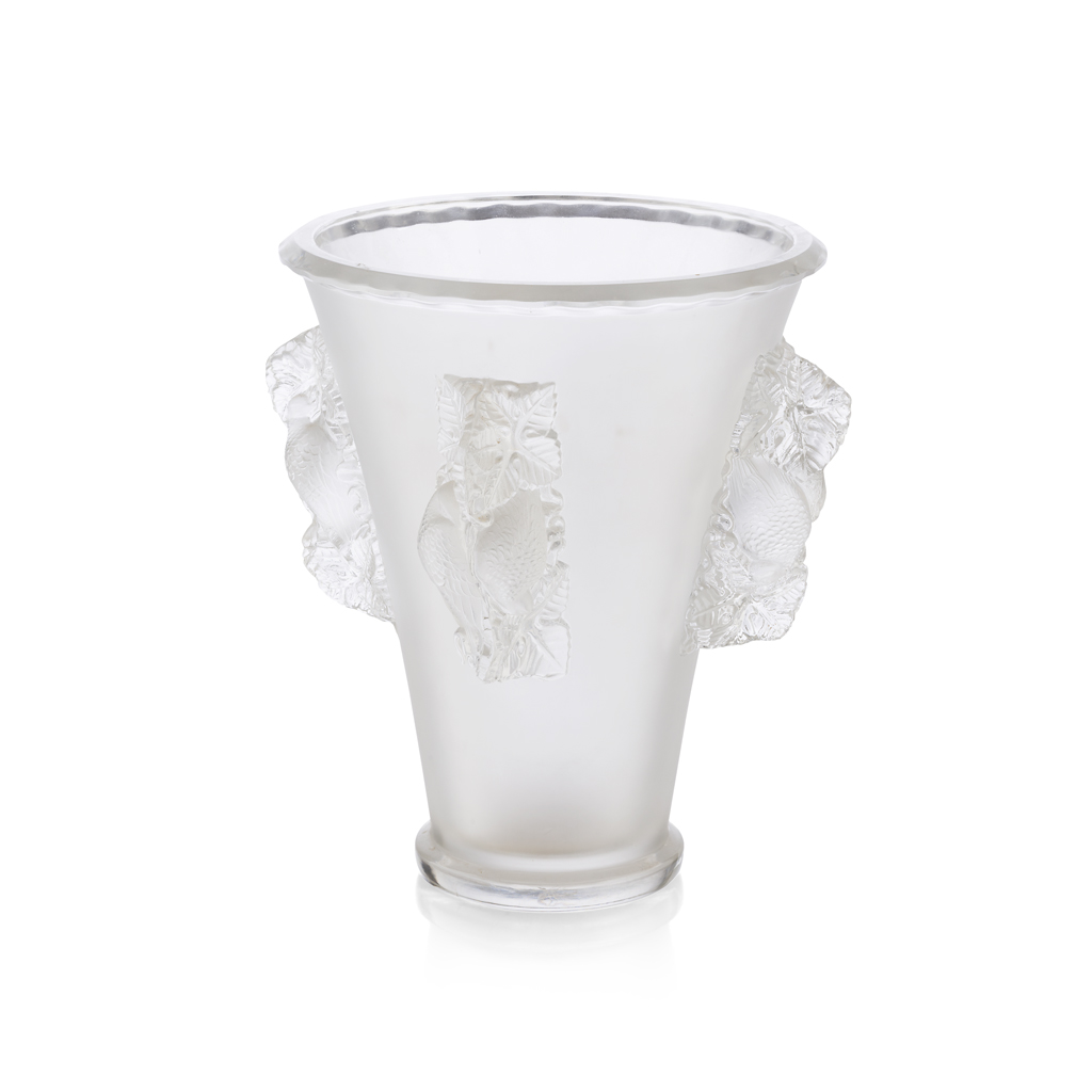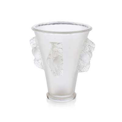 of tapered form with four moulded handles, script etched mark LALIQUE/ FRANCE