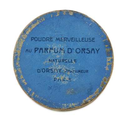 with card base, printed on base POUDRE MERVEILLEUSE/ AU PARFUM D'ORSAY/ NATURALLE/ D'ORSAY PARFUMEUR/ PARIS, the glass with moulded marks D'ORSAY/ R. LALIQUE