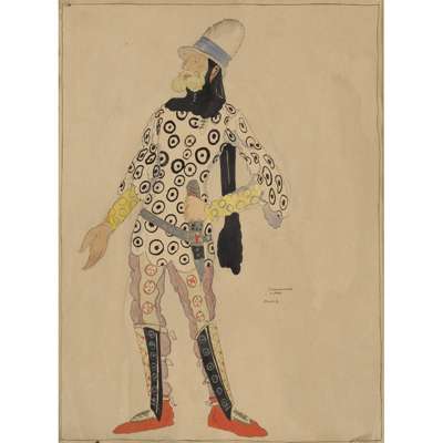 Note: This study is one of a series of designs for costume and scenery for a production of 'As You Like It', first performed at the Lyric Theatre, Hammersmith in April 1919.
