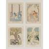 'Le gout des laques'; 'L'apres-midi d'un faun'; 'Grand-mere & petit-fille'; L'arc-en-ciel'; Niset au couer, belles dames!'; 'Eventails', by Barbier from "Le Bonheur du Jour ou Les Graces a la Mode", 25.5cm x 35cm