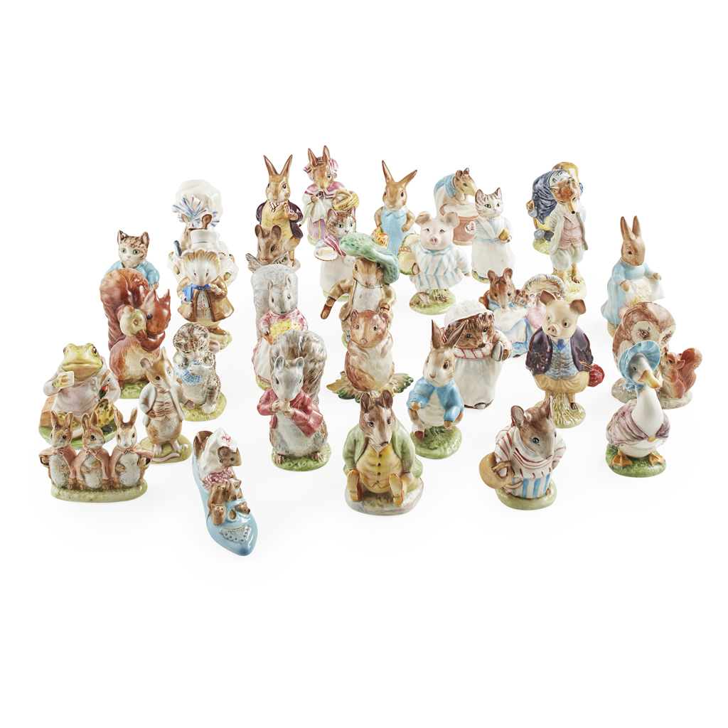 to include SAMUEL WHISKERS, JEMIMA PUDDLEDUCK, FLOPSY, MOPSY & COTTON-TAIL, and MRS TITTLEMOUSE all with BP1 printed gilt backstamp; in addition to twenty-eight figures with BP2 printed gilt backstamp (32)