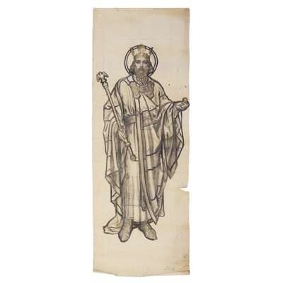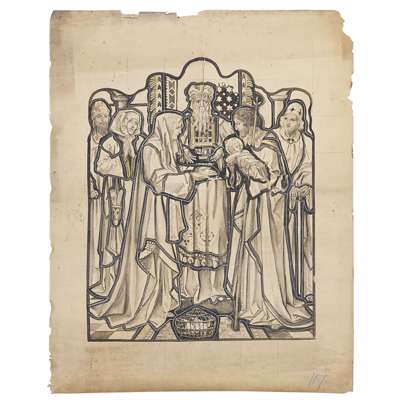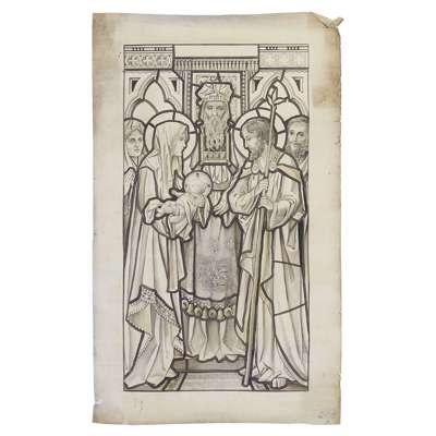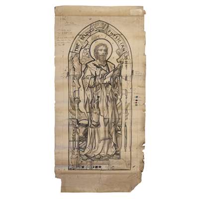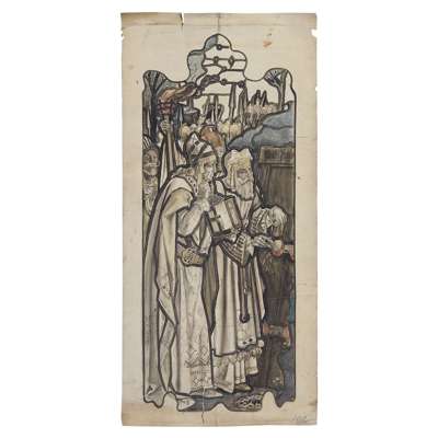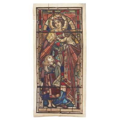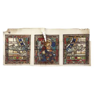 3. 65cm x 107cm, inscribed 'H. J. Salisbury, Artist in Stained Glass. 18 John Street, Bedford Row London, W.C. and St. Albans.'