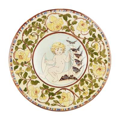 LARGE CIRCULAR GLAZED TERRACOTTA CHARGER, CIRCA 1900