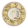 decorated by Aphra Peirce, the central panel incised and painted with a child on a crescent moon carried along by moths on leads, within broad rim decorated with flowering roses, incised maker's marks under base DR/ AJP